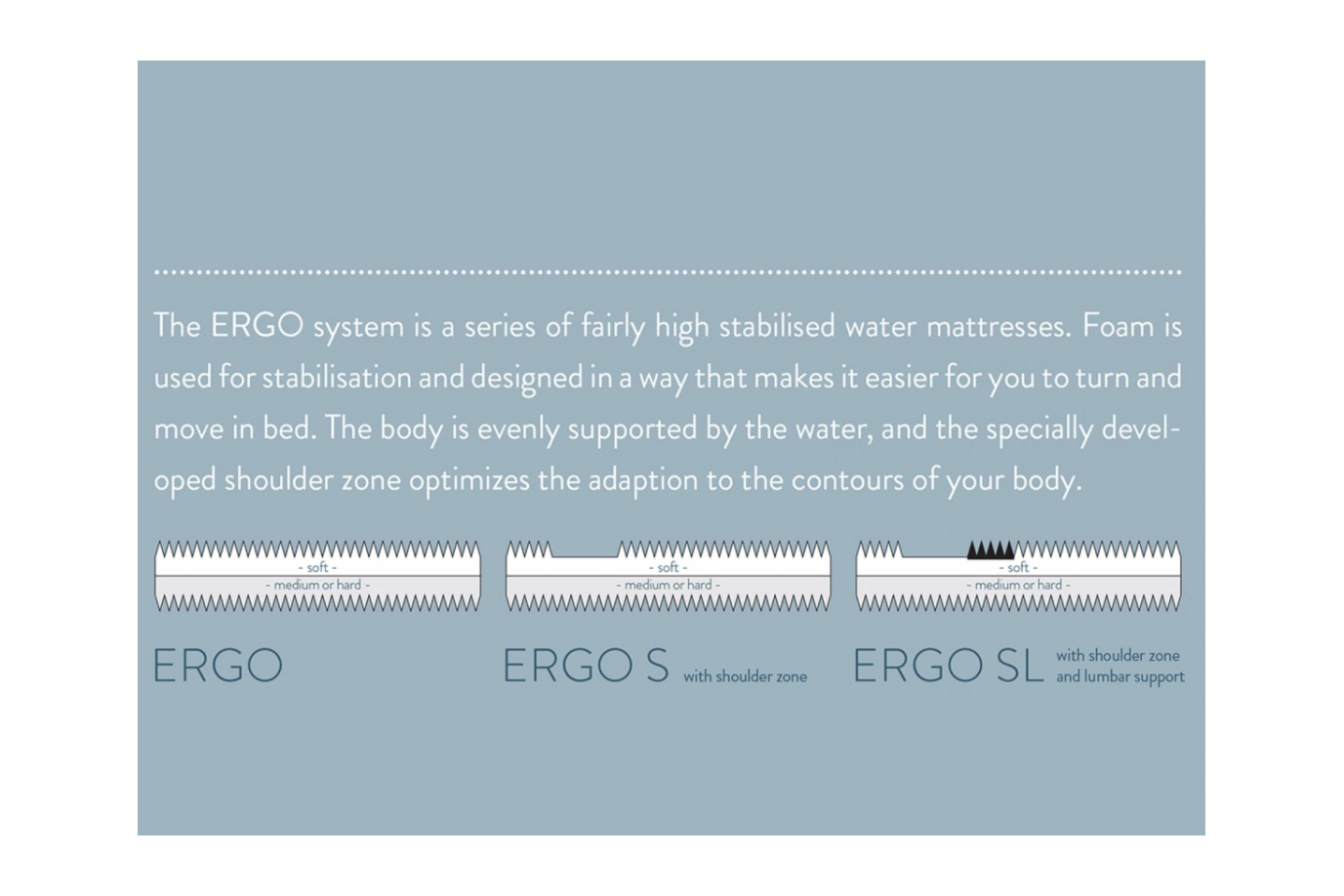 The ErGO system is a series of fairly high stabilised water mattresses.
